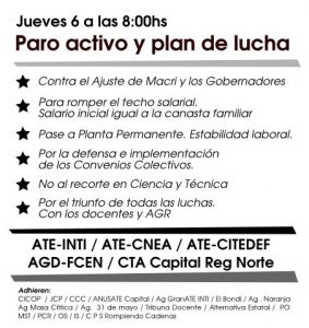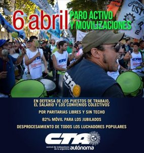 Ante la falta de respuestas por parte del gobierno de Mauricio Macri a los reclamos de los trabajadores, la CTAA de Capital exige a través de esta medida, el fin de las políticas de ajuste, de los despidos, de la criminalización de la protesta. Además reclama la convocatoria a paritarias libres y sin techo, y el 82 % para los jubilados.