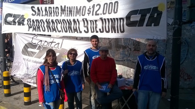 En la Avenida Corrientes, en las esquinas de Ángel Gallardo y Scalabrini Ortíz, la CTA Regional Centro puso dos mesas con la intención de invitar a los ciudadanos que por allí circulaban a la marcha contra el femicidio #Niunamenos, que será el miércoles 3 de Junio, y el gran paro nacional del 9.