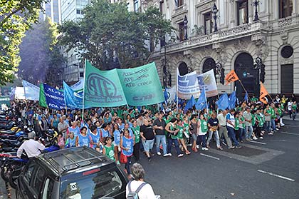 El legislador porteño Alejandro Bodart aplaudió también el triunfo de los trabajadores por haber “volado por los aires el techo del 20% en la negociación salarial”. Destacó la lucha de los docentes que “están protagonizando una verdadera rebelión nacional sobrepasando a la Celeste de Yasky y organizándose en la Federación Nacional Docente (FND) que le demuestra al Gobierno que no puede hacer lo que quiere”. Bodart señaló además que “ha llegado la hora de que el sacrificio lo hagan los capitalistas no los trabajadores como dijo la Presidenta. Hay un plan alternativo de los trabajadores que empieza por no pagar la deuda externa. Se tiene que terminar esto de que cuando hay plata se la llevan los de arriba y cuando hay crisis la pagamos los de abajo”.