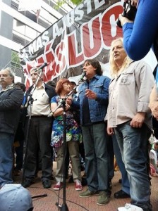 En representación de quienes están acampando en el Congreso Nacional contra la instalación de Monsanto, se leyó un documento: “Adherimos a las luchas de los trabajadores y los convocamos a defender su alimento, con hambre y con venenos no hay luchas. Silenciosamente y desde hace ya dos décadas, el modelo de los agronegocios se instala en la Argentina con Monsanto a la cabeza transformando en su gran negocio todos nuestros recursos. Hoy peleamos por la vida, el alimento, el suelo, el agua y la tierra, estos no son bienes negociables, son nuestros más apreciados bienes comunes”. El documento finalizó convocando a todos los trabajadores y trabajadoras a marchar el 2 de diciembre desde la Plaza de Mayo al ministerio de Agricultura para gritar: “Fuera Monsanto con tu maíz de mi país”.