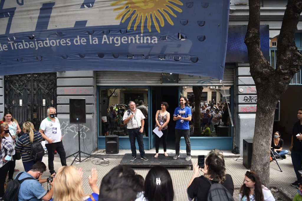 Luego de más de dos horas de debate y con un receso para almorzar, el Congreso Extraordinario de la Central porteña continuó con una plenaria general –al aire libre, en las puertas de la CTAA Capital- para hacer una puesta en común de lo debatido y poder votar las propuestas que fueron surgiendo en las comisiones.
