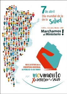 «De este modo nos organizamos, y nos constituimos en el ’Movimiento por el Derecho a la Salud. La Cobertura Universal es una estafa, lo Público es de Todos’. Impulsado por múltiples Organizaciones y Representaciones del ámbito de la Salud y DDHH del país, nos proponemos alertar públicamente sobre la iniciativa del Gobierno de instalar la llamada “Cobertura Universal de Salud”, lo cual no es otra cosa que una aceleración del propósito de reformar nuestro Sistema de Salud, promoviendo el avance de su mercantilización, el recorte de prácticas, el aumento de no-usuarios del sector público, del gasto de bolsillo de los usuarios, y una profundización de las distintas formas de precarización laboral y salarial para lxs trabajadorxs del sector.