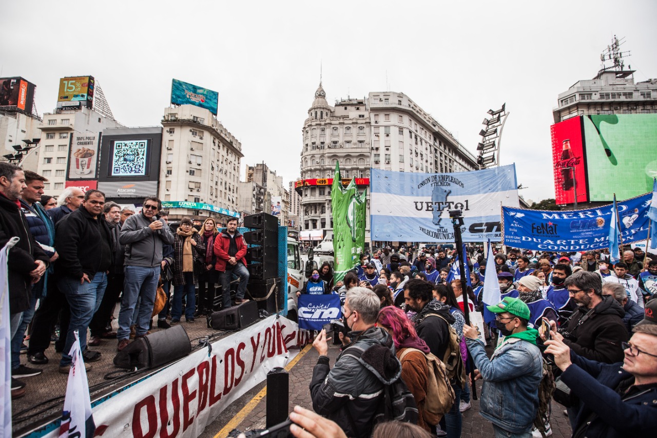 En este marco de manifestaciones mundiales, el Obelisco fue el epicentro este martes de esta marcha que reunió a miles de personas de distintos movimientos sociales, entre ellos la CTA Autónoma, bajo el lema “La deuda es con los pueblos y con la naturaleza”. Tras los discursos, las organizaciones presentes se dirigieron hacia las oficinas del FMI en la ciudad de Buenos Aires en repudio al ajuste que ese organismo internacional impone a los países endeudados. Recordaron que en la Argentina la deuda ilegítima de U$S 44.000 millones otorgada para ayudar al ex-presidente Macri en su reelección, en violación del propio estatuto del FMI, impide que el país pueda salir de la crisis y la pobreza a la que está sometida la mitad de la población.