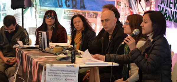 En el mediodía del tercer día de la carpa por el Trabajo Digno instalada en el Obelisco se realizó una charla sobre estrategias gremiales para prevenir la precarización laboral.