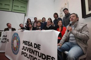 Pagina 12 lo relata bastante parecido: “JOVENES DEL FPV, LA UCR Y EL PRO PRESENTARON LA MESA DE JUVENTUDES POLITICAS.Un espacio para el consenso juvenil. Los integrantes de los diferentes partidos aspiran a generar acuerdos en torno de problemas sociales. Como primer paso, van a trabajar sobre la problemática de las adicciones. El Frente Renovador fue invitado, pero no participó. Dirigentes jóvenes del Frente para la Victoria, la Unión Cívica Radical y el PRO lanzaron la Mesa de Juventudes Políticas, en el Cabildo. Desde allí, los integrantes de los distintos partidos esperan abordar diferentes problemas sociales en los que encuentren consenso. La primera tarea que se dieron es sobre la problemática de las adicciones. Aunque el Frente Renovador de Sergio Massa estaba invitado, no concurrió al encuentro. La mesa de lanzamiento estuvo integrada por el secretario general de La Cámpora, Andrés “Cuervo” Larroque, y el diputado Horacio Pietragalla, por el Frente para la Victoria; Leandro Santoro, por la juventud de la UCR, y Pedro “Piter” Robledo, por los jóvenes del PRO. El panel lo completaron la ministra de Desarrollo Social porteña, Carolina Stanley; el titular de la Sedronar, Juan Carlos Molina, y el director de la Red Solidaria, Juan Carr.”