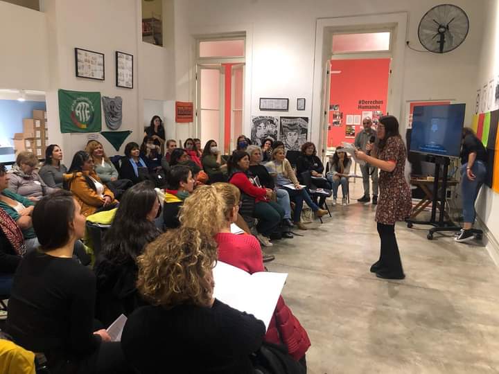 Por su parte, Clarisa concluyó: “Desde los feminimos queremos discutir la riqueza, quién paga el trabajo que hacemos, por ahora las patronales no quieren poner dinero. Necesitamos que nuestras organizaciones asuman que hablar del trabajo de cuidado es un debate de fondo, aunque volvamos a escuchar que son otras las prioridades porque redistribuir ese trabajo, reconocer ese trabajo, redistribuir el uso del tiempo, redistribuir la inversion en infraestructura de cuidado son dimensiones de lo que es redistribuir la riqueza. Por ahora la crisis la pagamos las mujeres con nuestro trabajo y a costa de nuestra pobreza de ingresos y de tiempo.”