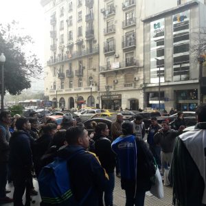 Hace quince días los trabajadores rodeados de una enorme solidaridad de organizaciones sociales, gremiales y políticas y junto al resto de los trabajadores del Ministerio realizaron una importante manifestación en la Avenida Córdoba y 9 de Julio bajo la amenaza constante de un impresionante operativo policial.