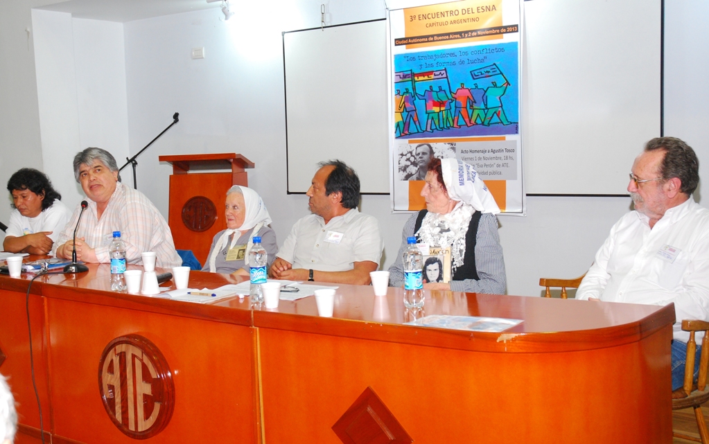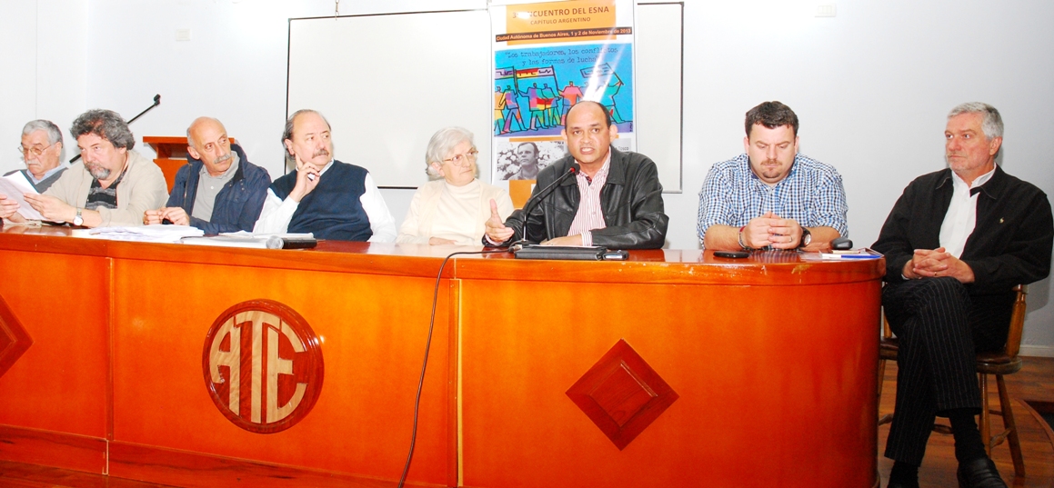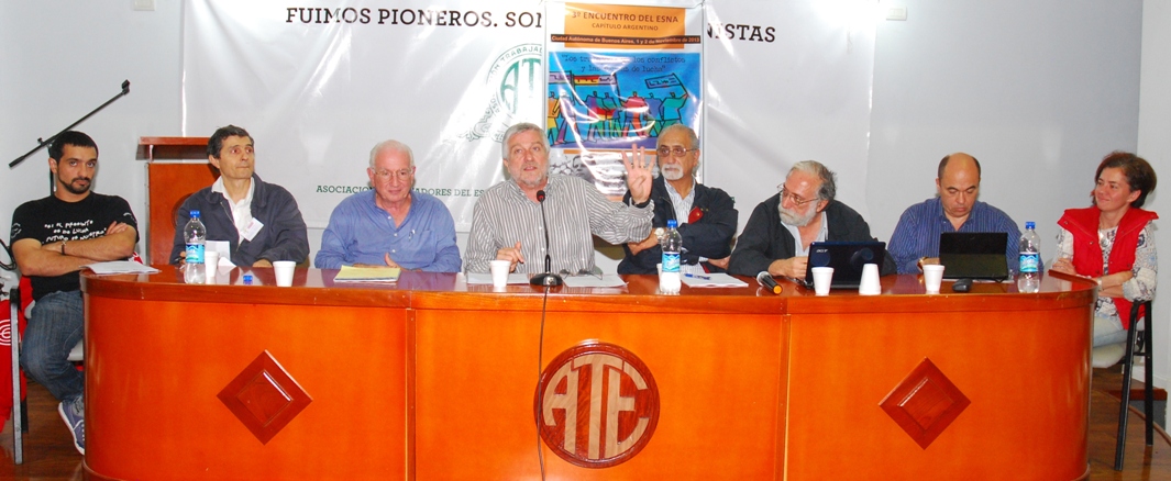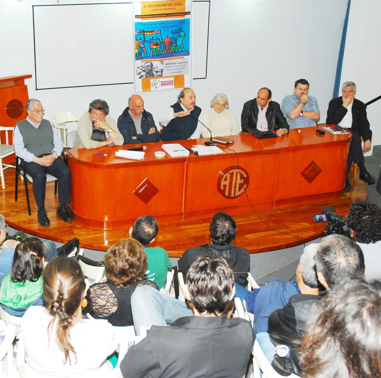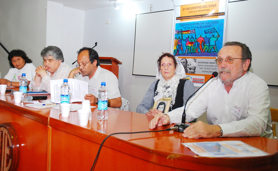 El viernes 1° y 2 de noviembre se realizó el tercer encuentro del ESNA – Capítulo Argentino bajo el lema “Los trabajadores, los conflictos y las formas de lucha” en la sede nacional de la Asociación Trabajadores del Estado (ATE), con cerca de 200 personas registradas y la presencia de invitados internacionales de Brasil, Cuba, México, Colombia y Uruguay y de compañeros de todo el país se realizó una rica jornada de debate y trabajo colectivo para seguir construyendo poder popular y organización clasista de trabajadores. Entre los importantes delegados internacionales, el evento contó con la participación del uruguayo Juan Castillo, Coordinador continental del ESNA y del cubano Ramón Cardona, Secretario de la Federación Sindical Mundial –FSM- para América Latina y El Caribe.
