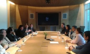 Con_Macri-fa7b2Ayer por la tarde, y en el marco de una ronda de reuniones que se está llevando adelante con los seis candidatos a suceder a Cristina Fernández el próximo 10 de diciembre, el secretario General de la CTA Autónoma Pablo Micheli, junto al secretario de Organización Carlos Chile, el secretario de Derechos Humanos Hugo Blasco, el secretario de Salud Laboral Jorge Yabkowski, el Director del Observatorio Jurídico Horacio Meguira y el secretario General de la CTA-A Capital José “Pepe” Peralta, mantuvieron una reunión en la nueva sede del Gobierno de la Ciudad ubicada en Parque Patricios con el actual jefe de Gobierno Porteño y candidato a presidente de Cambiemos Mauricio Macri. En la línea de lo resuelto oportunamente por la mesa de la CTA-A Nacional, se le hizo llegar una carpeta con los reclamos prioritarios para la Central.