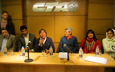 Además de los integrantes de la Mesa Nacional de la Central, Ricardo Peidro, Jorge Yabkowski, Darío Perillo, Adolfo “Fito” Aguirre, los abogados del Observatorio Jurídico, Luis Campos, Verónica Quinteros y Mercedes González, estuvieron presentes en la conferencia los legisladores Facundo Moyano, Claudio Lozano, Víctor de Gennaro, Ricardo Cucovillo y Rita Liempe, así como Vilma Ripoll, Enrique Furman, Elia espen, Emilio Cornaglia, Daniel Menéndez, Julio Gambina, Víctor Mendibil, Hugo “Cachorro” Godoy, José Luis Matassa, Mariano Sánchez Toranzo y Juan Namuncurá.