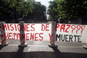 En una presentación realizada en la Facultad de Ciencias Sociales el 7 de mayo, el analista institucional Fernando Moyano, integrante de la Coordinación por el Retiro de las Tropas de Haití, explicó que de los 115.000 cascos azules en 15 misiones en todo el mundo, el 77 por ciento están “en puntos fallidos de la periferias de África” y el 10 por ciento en Haití, donde “no hay un conflicto armado sino un conflicto político que se quiere contener por la intervención militar”. En su opinión, las misiones de paz “no son neutrales, son fuerzas combatientes a favor de un lado” y “no buscan la paz sino derrotar a un bando”.