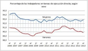 En el terreno de la calificación vemos como las mujeres profundizan sus condiciones de desigualdad en el acceso al mercado de trabajo cuando realizan tareas sin calificación. Aumentando la precariedad que ya existe en esos puestos de trabajo.