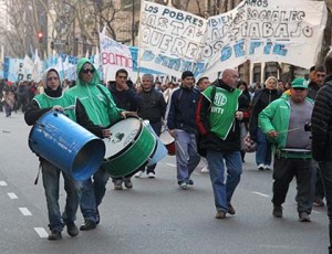 Desde las 14 comenzaron a concentrar trabajadores y organizaciones que llegaban luego de haber protagonizado los distintos cortes y actos en el área Metropolitana, confluyendo en las puertas del Cabildo. Con los bombos al frente, avanzaba la movilización de miles de trabajadores a través de Avenida de Mayo.