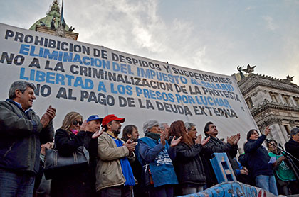 La multitud reclamó la urgente sanción una ley que prohíba los despidos y suspensiones por un año, la derogación del impuesto al salario, el cese de la precarización laboral, el desprocesamiento de todos los luchadores sociales, el 82% móvil para todos los jubilados y pensionados, la suspensión del pago a los organismos internacionales mientras se investigan el origen de esa deuda fraudulenta, entre otras demandas históricas.