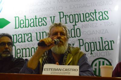 La última mesa de trabajo de la triple jornada de Propuestas para un Estado Democrático y Popular tuvo como coordinador a Adolfo «Fito» Aguirre, Secretario de Relaciones Internacionales de la CTA Autónoma y Vocal del Consejo Directivo Nacional de ATE.