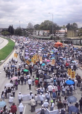 El Secretario General de la Central de Trabajadores de la Argentina Autónoma Pablo Micheli participó junto a la Central Unitaria de Trabajadores de Colombia (CUT) de la Marcha por la Paz llevada a cabo este jueves 9 de abril en la ciudad de Bogotá, en respaldo a las conversaciones encaminadas al fin del conflicto armado que padece el territorio colombiano desde hace más de 50 años.