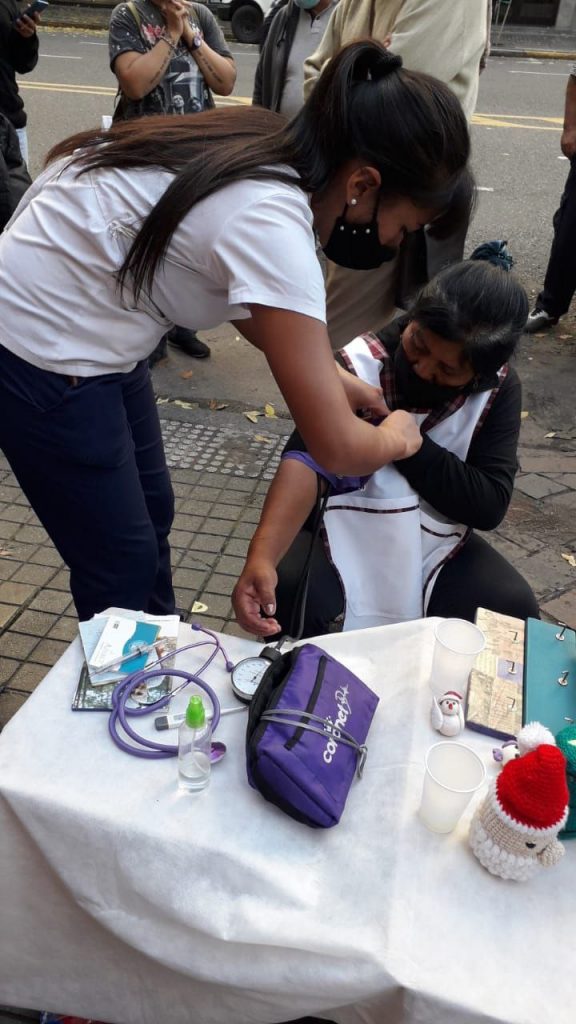 “Hoy Larreta sigue diciendo que todo está bien en los colegios, pero en nuestros barrios hay muchos niños descuidados, los colegios se caen a pedazos y son nuestros jóvenes desde el Potenciar Trabajo quienes están sosteniendo las tareas que el Estado no hace. Su tarea, como las de nuestras promotoras, es invisibilizada sistemáticamente y esta situación se repite en todas las organizaciones aquí presentes. Nuestras compañeras están todos los días en las esquinas tomando la presión, en las salitas, acompañando a las y los vecinos en la atención de su salud; a las mujeres en situación de violencia, a las familias en situación de calle. Por eso le venimos a decir al señor Larreta que nosotros somos trabajadores y trabajadoras aunque no nos reconozcan”.