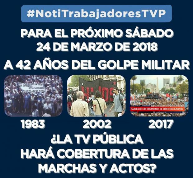 «Gracias a la lucha de los trabajadores y las trabajadoras, finalmente el sábado volverá a emitirse un noticiero por la pantalla de la TV Pública que transmitirá los actos en conmemoración del golpe de Estado que dio inicio a la última dictadura cívico-militar.
