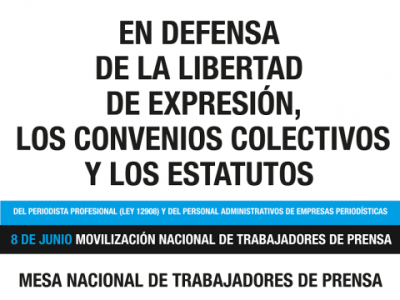 La jornada organizada por la Mesa Nacional de Trabajadores de Prensa, compuesta por sindicatos y federaciones del sector, convoca a la movilización que comenzará a las 14 desde el Obelisco y que finalizará con un acto frente al Ministerio de Trabajo, ubicado en avenida Leandro N. Alem al 600.