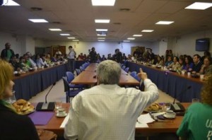 La última en tomar la palabra, antes de que se abriera el debate a todas y todos los presentes fue Nina Brugo,secretaria de la Mujer de UP, quien recordó que ayer era el Día de la Lucha Internacional contra la violencia contra la mujer, además de ser el día que se recuerda la sanción de la ley del voto femenino».
