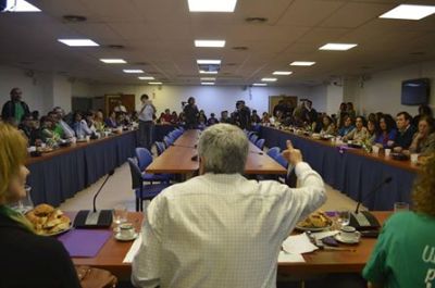 «Es un día especial, lo siento distinto. Si las compañeras construyeron este proyecto es garantía de que lo van a militar y convertir en ley», dijo Vel diputado nacional de la CTA por Unidad Popular, Víctor De Gennaro. al abrir la audiencia.