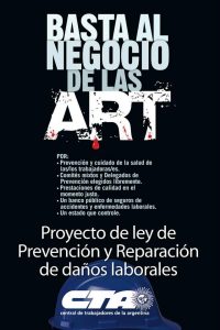 Por eso el proyecto de Ley de Prevención de Riesgos Laborales y Reparación de Daños e Incapacidades de Accidentes de Trabajo y Enfermedades Laborales elaborado por la Central de Trabajadores de la Argentina y presentado en su momento a través del Diputado Nacional (MC), Víctor De Gennaro, propone: