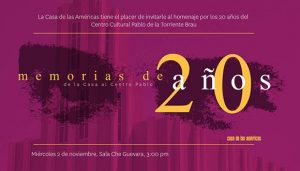 Han pasado dos décadas desde la fundación de un lugar para los amigos. Muchos de los que habían ayudado a conformar el trabajo intelectual de la Casa de las Américas se implicaron también en aquel otro esfuerzo y ahora se nos vuelven nombres en común: Mario Benedetti, Eduardo Galeano, Silvio Rodríguez y hasta el propio Roberto Fernández Retamar. Ellos y otros como Zoe y Ruth de la Torriente, Raúl Roa, Julio Girona, Ambrosio Fornet y otra larga lista hicieron de aquella aventura la experiencia tangible que hoy llamamos Centro Cultural Pablo de la Torriente Brau.