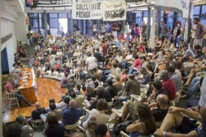 El repudio al “protocolo anti protesta social” fue votado de manera unánime por todos los trabajadores de prensa que concurrieron a la asamblea y un plan de lucha contra el vaciamiento del Grupo 23, el pago de los salarios adeudados en Tiempo Argentino, Radio América y otros medios y frente a los despidos que suceden a diario en distintas empresas periodísticas.