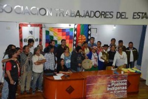 10314555_10205606756038497_6351780503594279984_n«Naciones Originarias del país, a través de sus importantes organizaciones, autoconvocadas en la Ciudad Autónoma de Buenos Aires durante los días 9 y 10 de marzo, nos hemos reunido en la modalidad de Parlamento llegado desde los cuatro puntos cardinales del país. Los trabajadores nucleados en ATE Nacional, nos facilitaron sus instalaciones para este importante y urgente Parlamento».