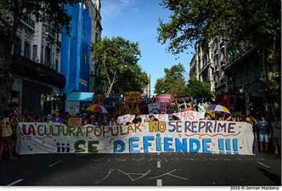 Bajo la consigna «La cultura popular no se reprime, se defiende», unos 6 mil murgueros desfilaron por Avenida de Mayo hasta la Plaza del Congreso Nacional, en repudio a la represión a los chicos de la villa 1-11-14 por parte de Gendarmería. Allí estuvo presente la organización territorial Ruca Hueney, niñez y territorio.
