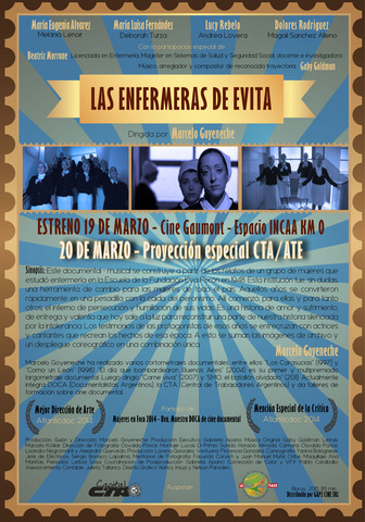El jueves 19 de marzo se estrenará -En el Cine Gaumont, Avenida Rivadavia 1635- “Las enfermeras de Evita”, documental dirigido por Marcelo Goyeneche, compañero de la Asociación de Personal Aeronáutico y Congresal Nacional de la CTA. Al día siguiente, el viernes 20 de marzo, se realizará una proyección especial para trabajadores y trabajadoras afiliados a la Central de Trabajadores de la Argentina y a la Asociación Trabajadores del Estado (ATE).
