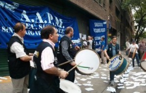 La nueva jornada de protesta de la Asociación Agentes de Propaganda Médica de la República Argentina (AAPM-CTA) tuvo lugar en la puerta de la Droguería del Sud, en avenida San Juan y Entre Ríos. Se eligió ese lugar porque perteneciente a los mismos accionistas que el Laboratorio Temis Lostaló, uno de los voceros de la industria en las negociaciones.