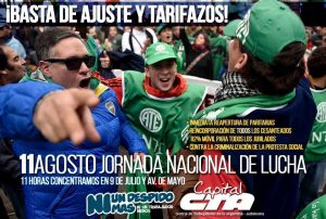 – Se trata de una Jornada Nacional de Lucha de la CTA Autónoma, que ha definido armar esta jornada en el plan de pelea que le estamos dando al Gobierno de Macri, porque venimos rechazando las medidas que vienen implementando, desde el ‘tarifazo’, hasta las paritarias por debajo de lo que necesita hoy un laburante para llegar a fin de mes. Que dicho sea de paso, los compañeros de la Junta Interna del INDEC estiman que ninguna familia con dos hijos puede ganar menos de 19.970 pesos para poder vivir. Sabemos que las paritarias han cerrado muy por debajo de lo que un laburante necesita para poder vivir. Hay cientos de miles de trabajadores que están por debajo de esa cifra. También sabemos que hay muchos compañeros que ni siquiera están bajo convenio colectivo, por lo tanto, muchas veces las pautas salariales que se discuten en los ámbitos paritarios no les llegan, porque son trabajadores precarizados. Hoy el 40% o más de los trabajadores y trabajadoras está en esa situación de no tener los derechos mínimos, como un aguinaldo, una jubilación, una obra social y tampoco son parte de las discusiones paritarias.