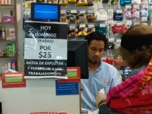 Farmacity es una empresa conformada por capitales nacionales y extranjeros, con una facturación mensual que supera los 7000 millones de pesos; siendo esta la cadena de farmacias más importante de Argentina. Además ha extendido sus negocios a formatos de bazares como “Simplicity” y locales de belleza como “Farmacity look” significando notables incrementos en sus ganancias; pero a pesar de ello hace más de 13 años que abona a los trabajadores $25 por trabajar los días domingos. Ante los reiterados reclamos por la actualización del importe, Farmacity se ha negado sistemáticamente a abrir una mesa de diálogo y dar una respuesta a más de 2000 trabajadores afectados.