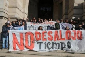 Conformados como la cooperativa Por Más Tiempo, ante el abandono empresarial del que fueron víctimas, los trabajadores reclamaron frente al Palacio de Justicia para no ser desalojados de la redacción que funciona en el edificio de Amenábar 23.