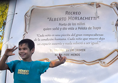 Foto01w-2El viernes por la tarde se inauguró el Recreo Pelota de Trapo en consonancia con el primer aniversario del fallecimiento de Alberto Morlachetti, el poeta de los niños. El hambre es un crimen.