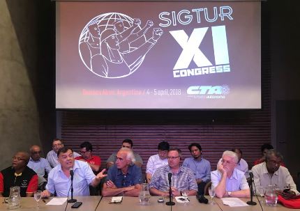 Representantes sindicales de 200 millones de trabajadores del mundo se reunieron hoy en el XI Congreso del Sigtur (Iniciativa Global del Sur) en el Hotel Quagliaro de la Ciudad de Buenos Aires. La CTA Autónoma es la anfitriona de este encuentro que se desarrollará hasta el 5 de abril y que tendrá como eje discutir el futuro del trabajo en el mundo y las alternativas desde los trabajadores y trabajadoras al sistema capitalista que se roba la riqueza generada por el trabajo.