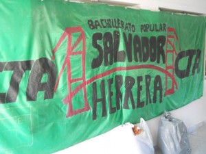 En el extenso paño verde se distinguió un puente rojo, mientras las letras negras empezaban a formar el nombre de quien nos inspiró por su lucha en defensa de las villas. Entre risas e indicaciones varias, pincel o mate en mano, pudimos leer: “BACHILLERATO POPULAR SALVADOR HERRERA – CTA”.