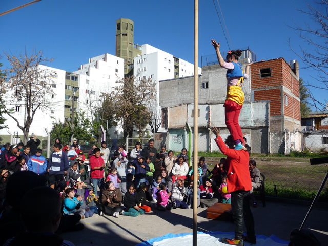 Bajo un intenso sol que abrigó en la tarde, un centenar de chicos y chicas de los barrios Pirelli, Cildañez, INTA y Scapino disfrutaron de una hermosa presentación de circo que contó con payasos, malabaristas, trapecistas, equilibristas y hasta una banda en vivo, que musicalizó cada destreza.