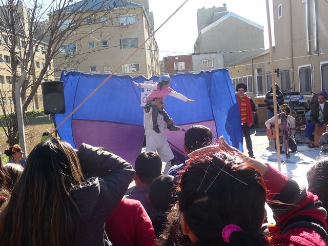 Durante la tarde del jueves 24 de julio los chicos y chicas del Barrio Pirelli se reunieron en el comedor del Torito Pulenta -lugar donde también funciona el Bachillerato Popular Salvador Herrera- para disfrutar de una función de circo y merienda. La actividad fue organizada por un grupo de compañeros y compañeras de la CTA Capital, con la idea de ofrecerles a los pibes una propuesta para las vacaciones de invierno.