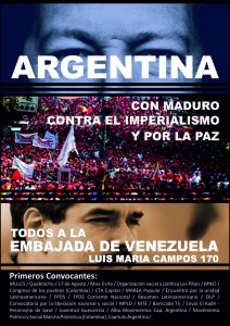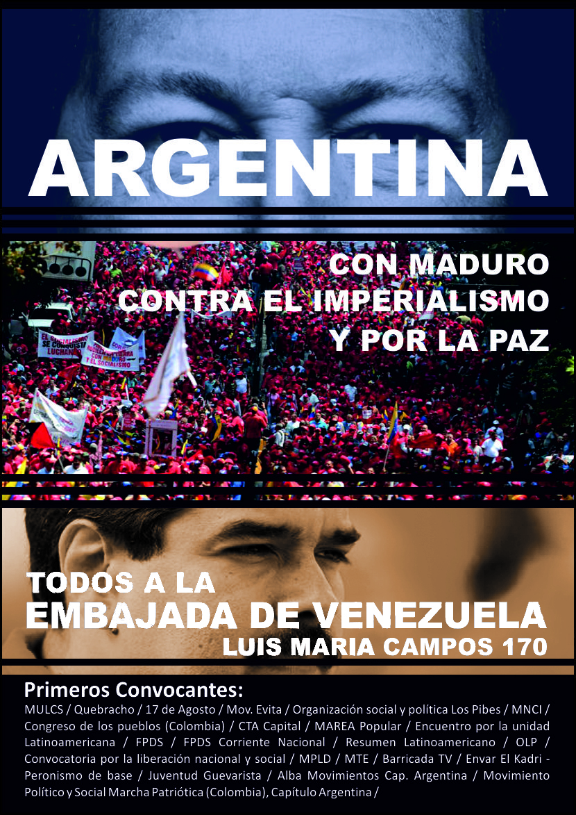 La Central de Trabajadores de la Argentina (CTA) de la Capital, junto a diversas organizaciones sociales y populares del país convocan al acto/concentración en solidaridad con la hermana República Bolivariana de Venezuela, con su presidente Nicolás Maduro, contra el Imperialismo y por la Paz.
