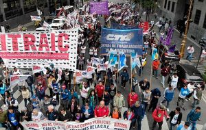 Pasadas las 10.00, una gran columna de trabajadores y trabajadoras del Sindicato de Trabajadores de la Industria de la Construcción (SITRAIC-CTA-A), junto con organizaciones de la Central y con la adhesión de un importante número de agrupaciones sindicales hermanas, realizó en la Ciudad de Buenos Aires una importante movilización que incluyó el paso por la sede de Vialidad Nacional y los ministerios de Transporte y Economía, para terminar luego en un acto en la Cámara Argentina de la Construcción.